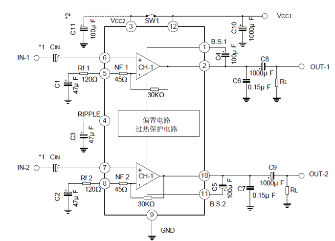 靜態(tài)電流小: ICCQ=21mA (Typ.) (VCC=9V, VIN=0) ?